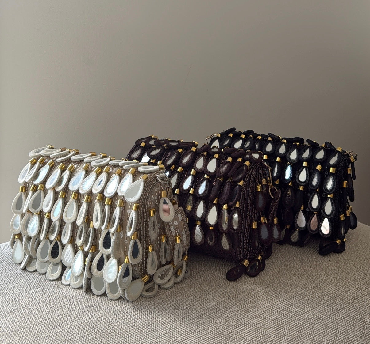 Our Mirror Luxe Bags blend traditional Indian mirror work with a bold, modern edge. With layered teardrop embellishments, metallic detailing, and a rich texture that catches the light from every angle, these bags are your new go-to for vacations, festive fits, nights out, and everything in between. Chic, unique, and made to stand out — no styling rules, just vibes.